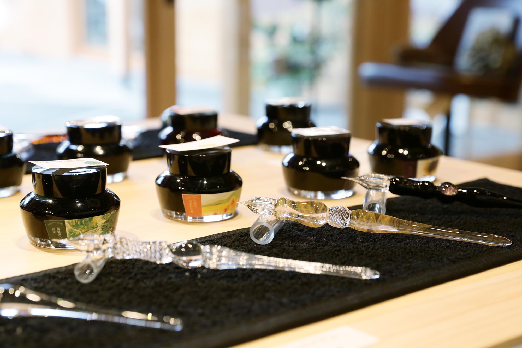 ガラス作家・江田明裕氏が作ったガラスアクセサリーやガラスペンを販売しているショップ兼工房。ガラスアクセサリーは、中に立体的な模様が入っていたり、洋服や見る角度によって色が変わったりするのが特徴。ガラスペンは書き心地や持ち心地、重さなど様々なバリエーションがあり、その場で試し書きもできます。購入したものは無料で修理してもらえるので、ずっと長く使っていけます。