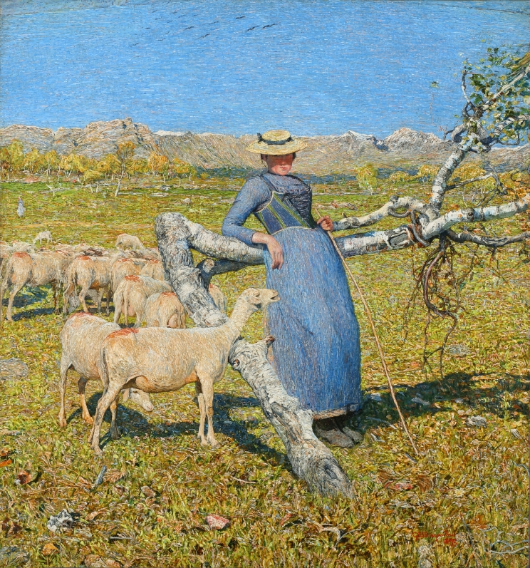 青い空、女性の鮮やかな青いワンピース、そしてアルプスのコントラストをムースで表現しました。
