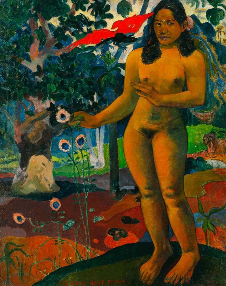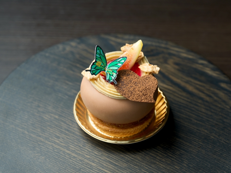 かぐわしきとは…良い香りがする、心惹かれる、素晴らしいとの意味合いがあり、そのイメージから発想しました。絵画の女性は原始のイヴとも言われており裸を恥じて無花果の葉で身体を覆ったことから旬の無花果をメインに。ゴーギャン自身がタヒチへ移住したことからタヒチ産バニラのブリュレを忍ばせゴーギャンと作品へ思いを馳せるガトーへと仕立てました。
