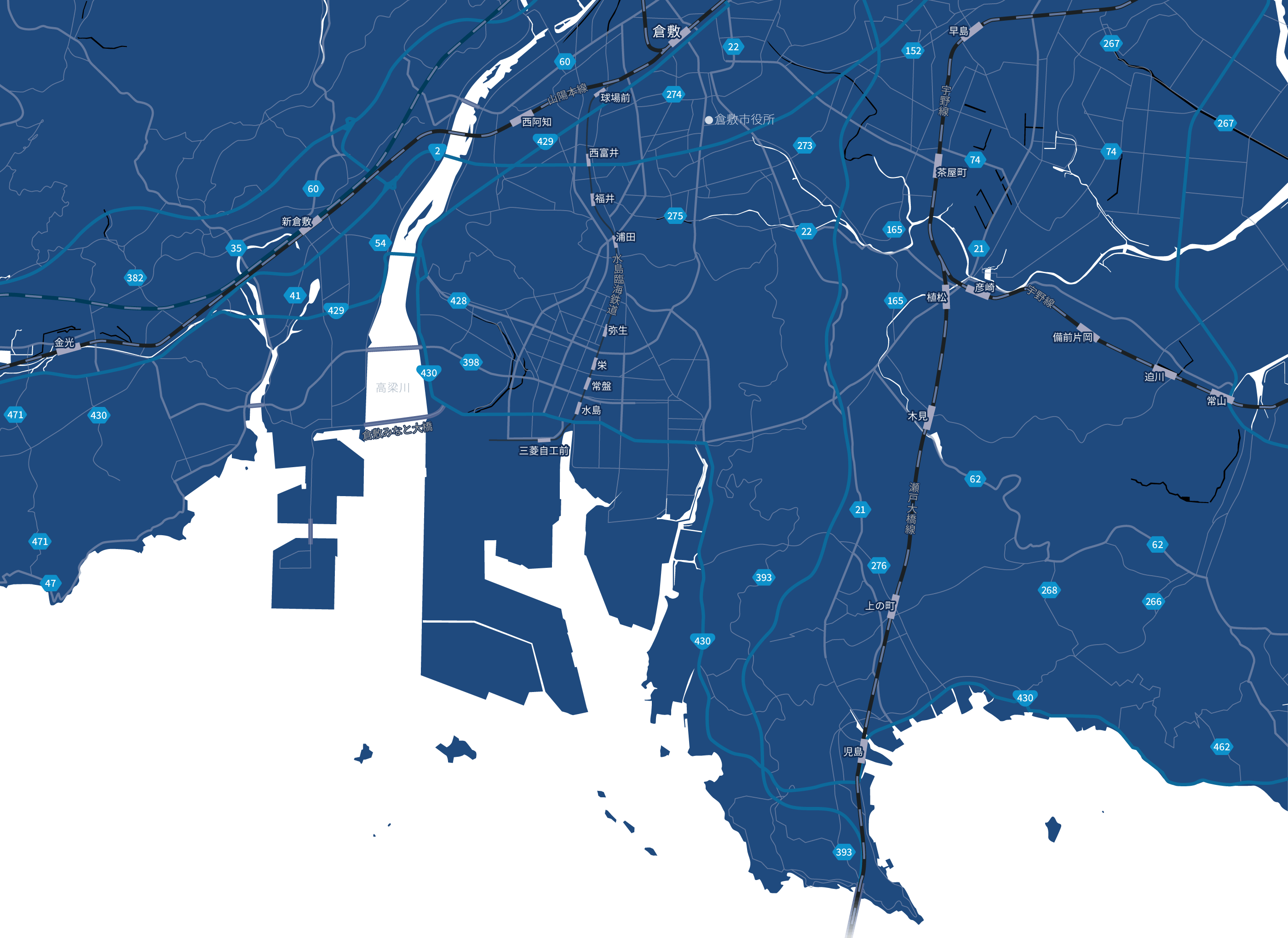 岡山県道393号線鷲羽山公園線の旧名。車窓からも水島コンビナートの夜景を愉しむことができる、夜景のまち倉敷の定番スポット。整備された水島展望台からの鑑賞がおすすめ。眼下に大迫力の工場夜景が広がります。ルビーのような航空障害灯、オレンジサファイア、エメラルド、ダイヤモンドのような設備灯が煌めく光景は宝石箱にも例えられ、全国の工場夜景ファンを惹きつけています。