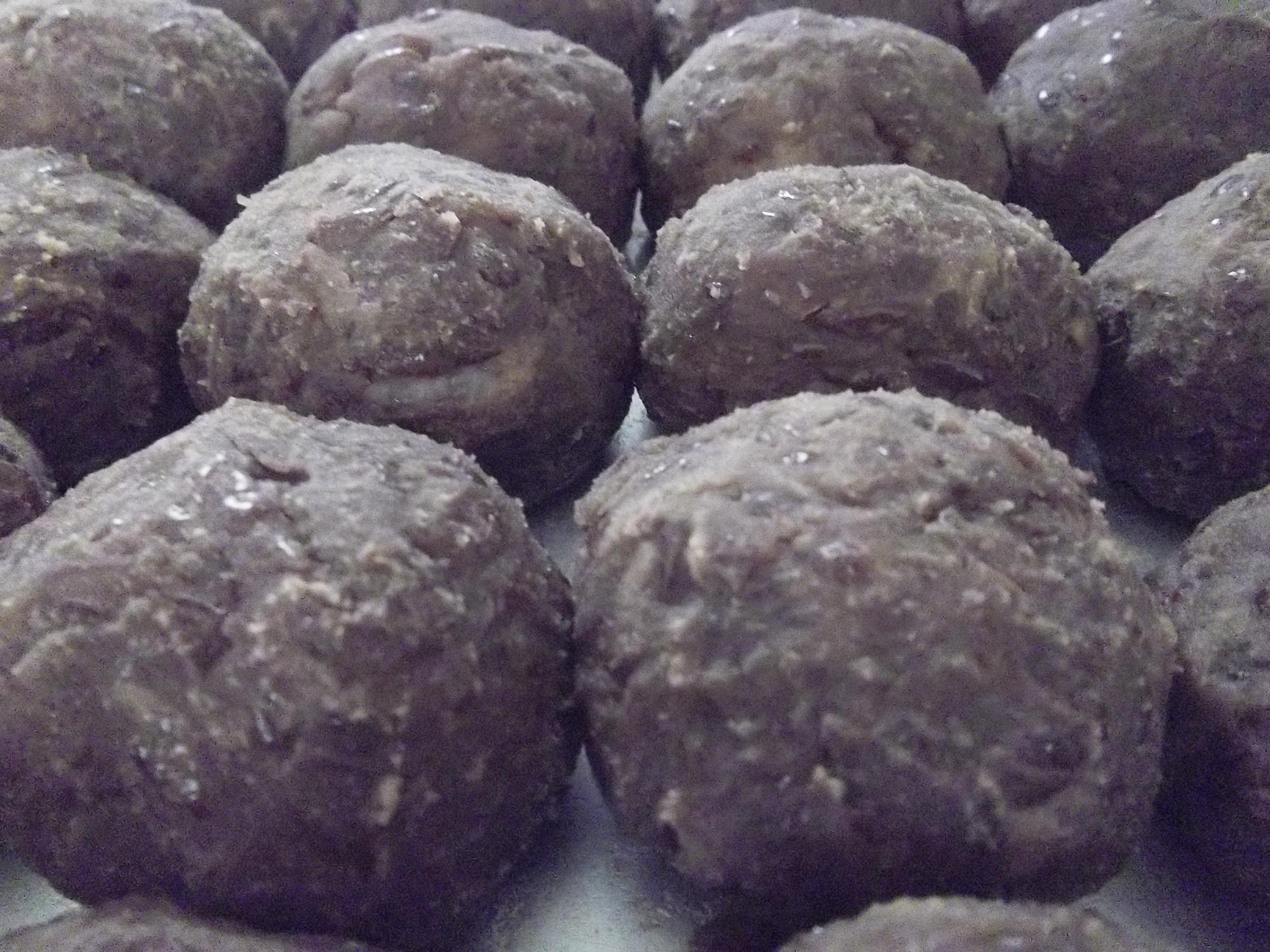 少し小ぶりの食べごろサイズで、程よい甘さの昔ながらの手作りおはぎ 2種類(あずき・きなこ)一個 60円(税込)