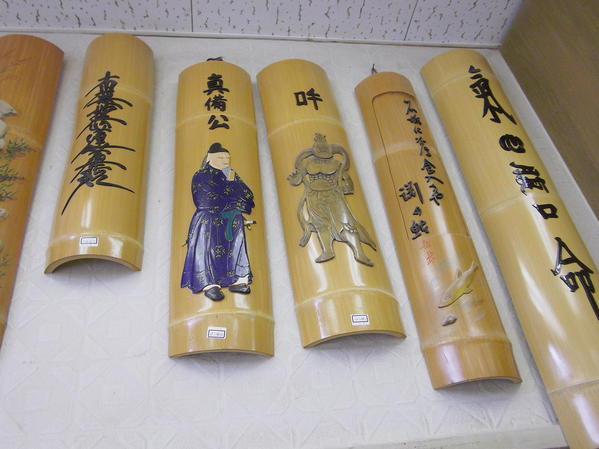 たとえば、竹を素材に使用した民芸調の表札があり、地元の有志が集まり活動している「竹工房」では、浮き文字や浮き絵彫りという手法で「表札」や「招福札」などの制作を行なっています。名前はもちろん、縁起の良い和文字、四字熟語や有名な歴史上の人物など様々なデザインのものがあります。お土産品としても人気が高く、また、素敵なインテリアとしてご自宅に飾られ方も多いとか。