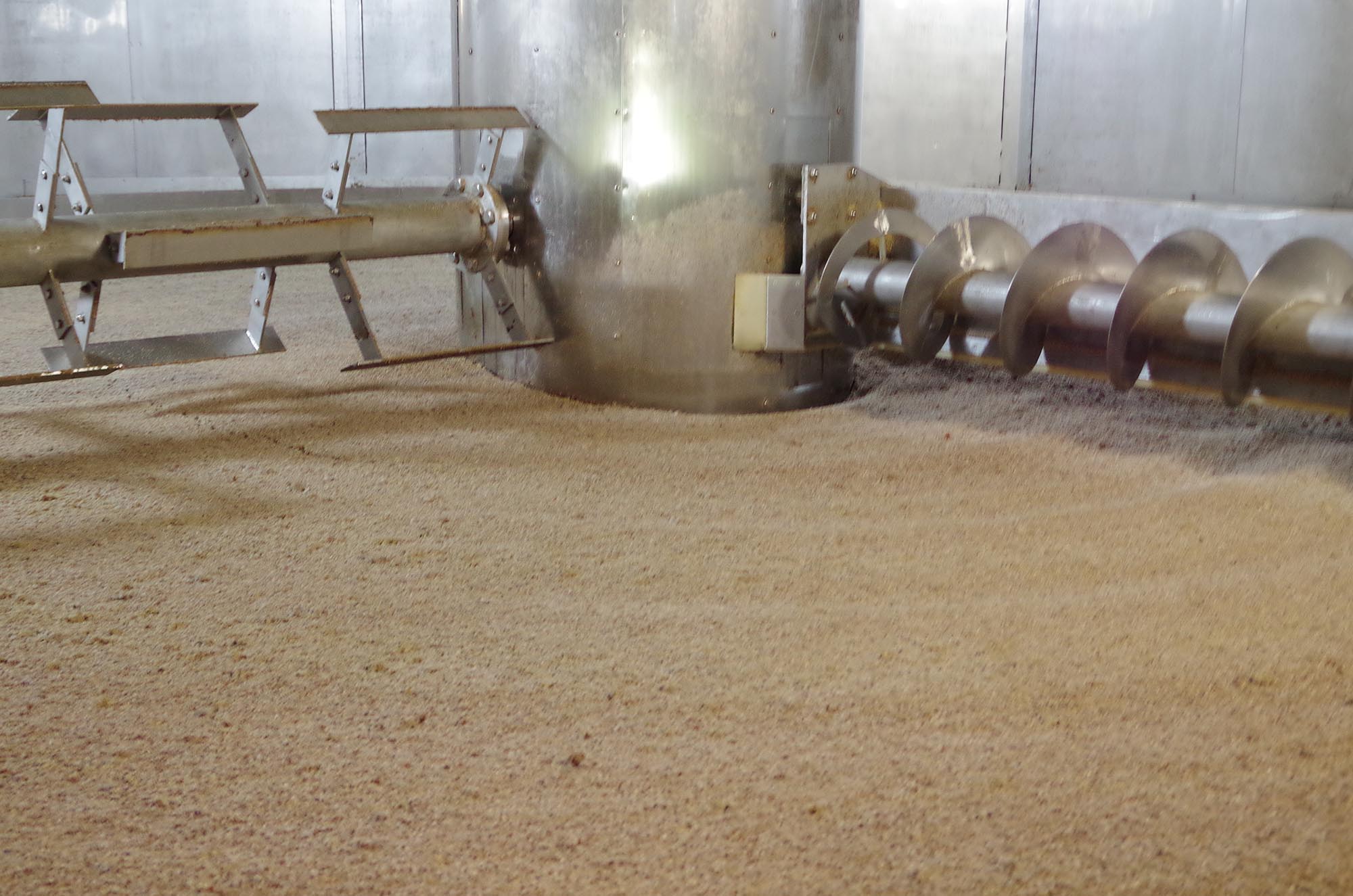製法は創業時と大きく変わらず、まず大豆を蒸すことから始まります。蒸した大豆に焙煎した小麦を混ぜさらに種麹を加えて麹(こうじ)を作りますが、この際、温度と湿度が製品の品質を左右する非常に重要な要素になるため、長年の経験を生かしながら厳重に管理されます。こうして作られた麹を塩水と一緒にタンクに仕込んで諸味にし、そのまま1年から2年間熟成させるわけです。熟成された諸味を搾ったものが生醤油と呼ばれ、それを加熱殺菌・濾過したものが製品となります。生醤油は塩水の代わりに麹を仕込む際にも使われ、生醤油を使って仕込まれたものを「再仕込み醤油」と呼んでいます。再仕込み醤油は熟成に2年かかりますが、甘みがあって色が濃く、刺身などに合う醤油として人気があります。