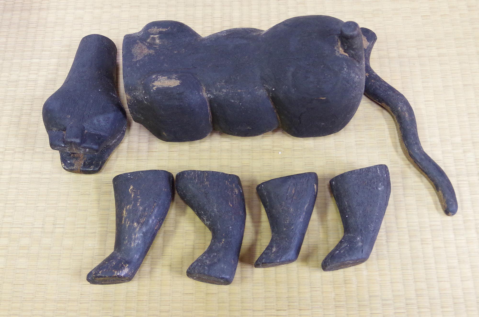 一貫して全て手作業で作られる張子。特に虎が有名。