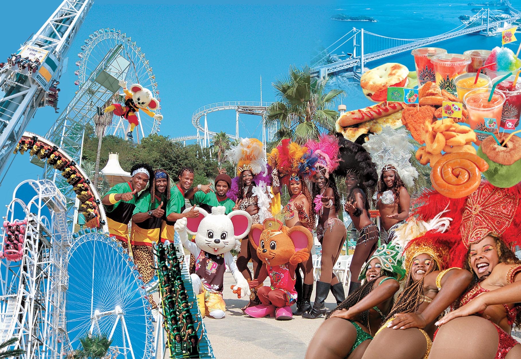 瀬戸大橋ー瀬戸内海の絶景を見下ろすことができる遊園地。世界で最も怖いと噂のスカイサイクルにバンジージャンプや多彩なアトラクションのほか、ふれあい動物園、夏にはスライダープールもOpen!!友達、家族みんなで楽しめる施設です。本場ブラジルサンバショーにビンゴゲームは毎日開催しています。
