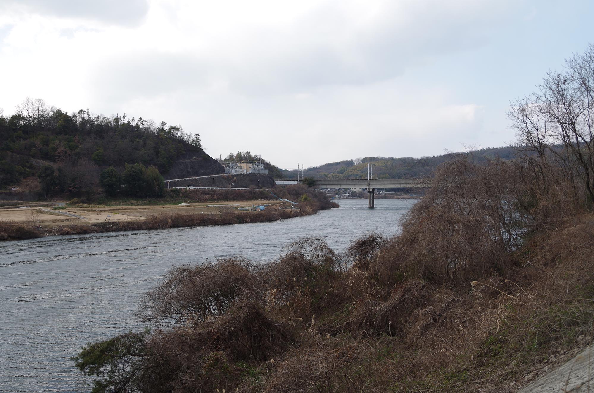 高梁川を仕切って造った貯水池