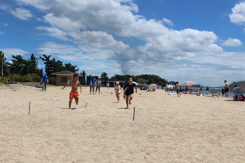 ビーチフラッグス、ビーチサンダル飛ばし、宝探しは当日参加が可能です。