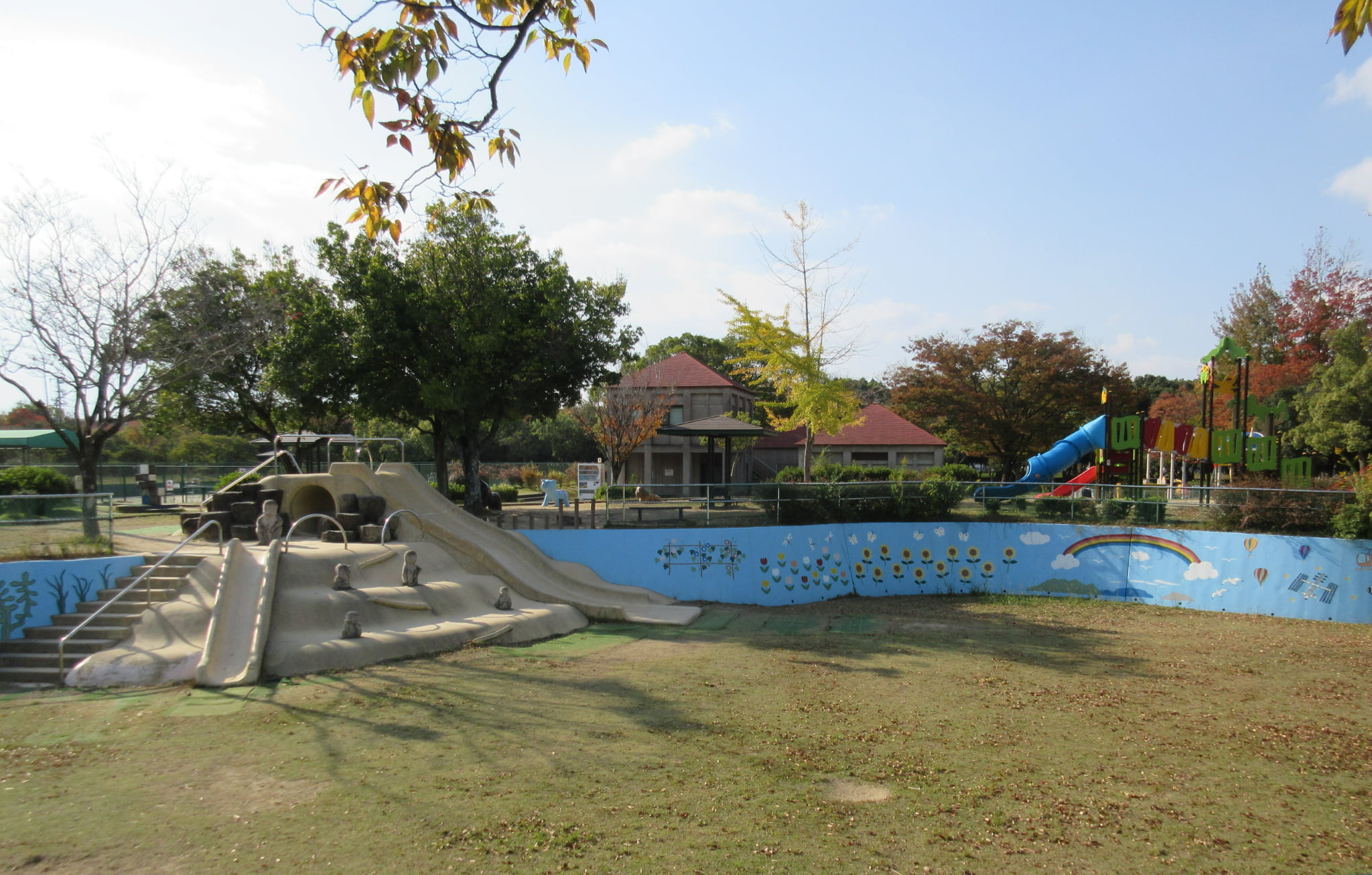 玉島地区の南の埋め立てE地区に整備にされ市民の憩いの場となっている自然豊かな総合運動公園です。