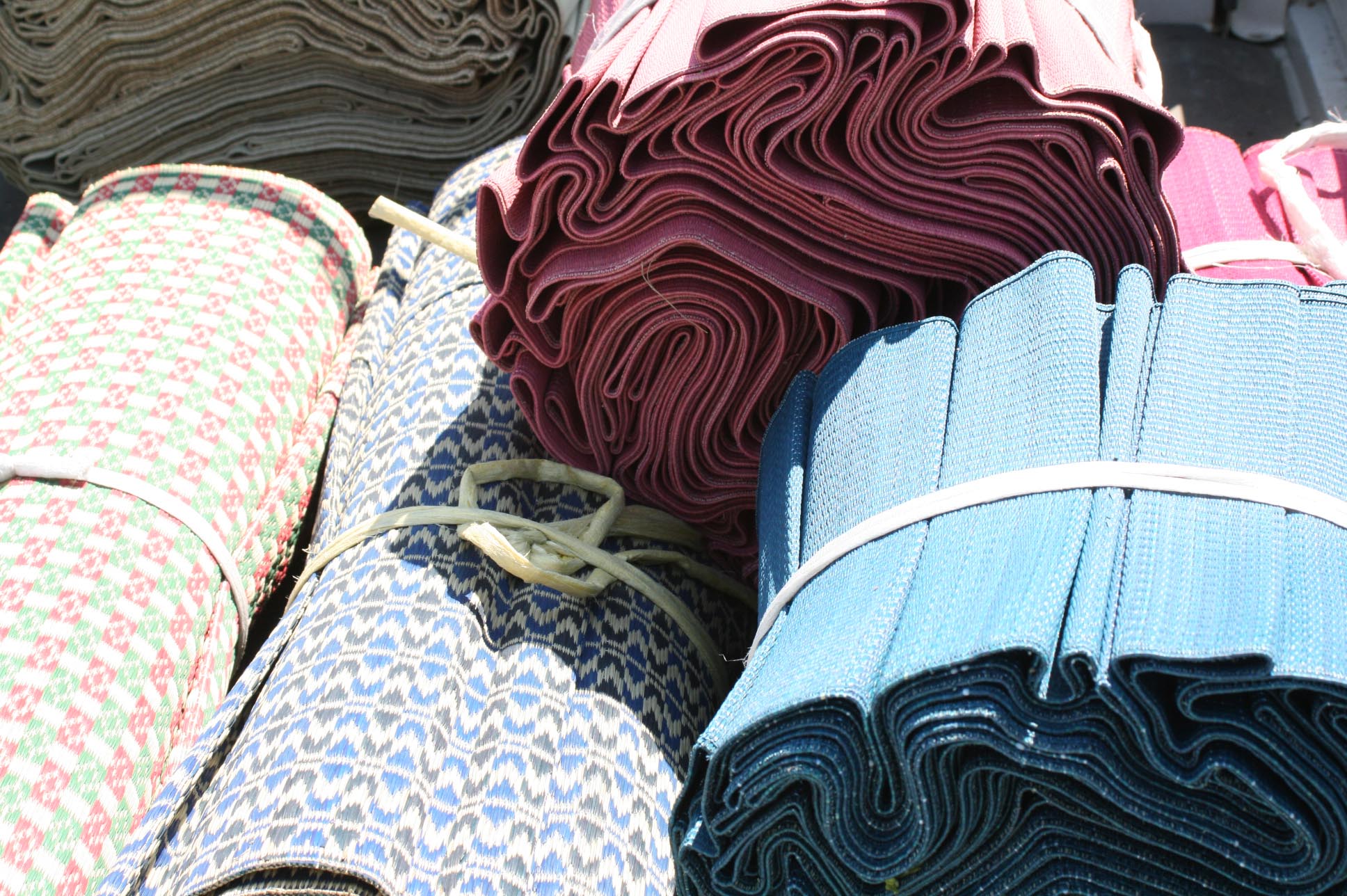 手話で「岡山」を意味するかたちは、イ草を使って畳を織る動作からきていると言われます。それだけ古くから地元に根差したイ草製品。花ござの製造会社も、昭和30年頃には西阿知地区だけで200社程あったそうです。しかし、それから10年も経つと、安い中国製品におされて、業者の数は徐々に減っていきました。
