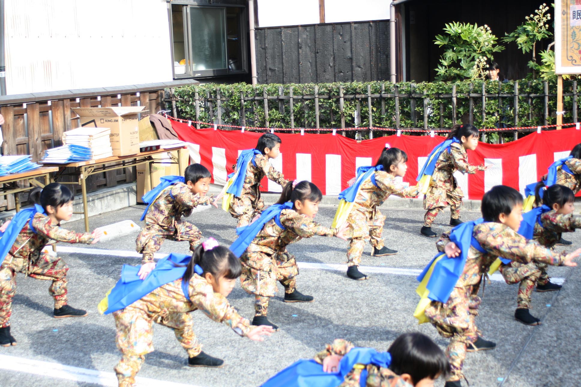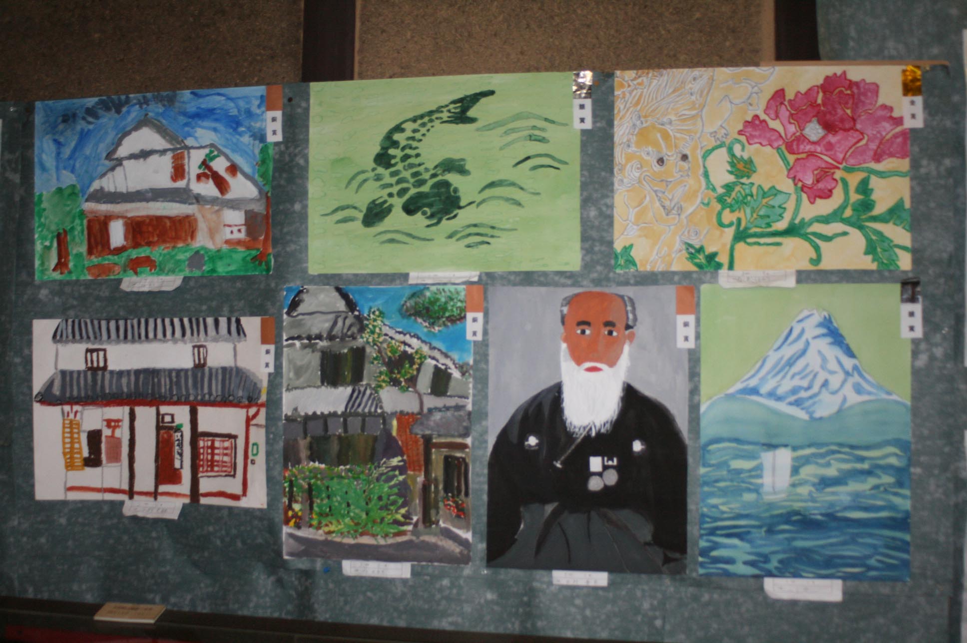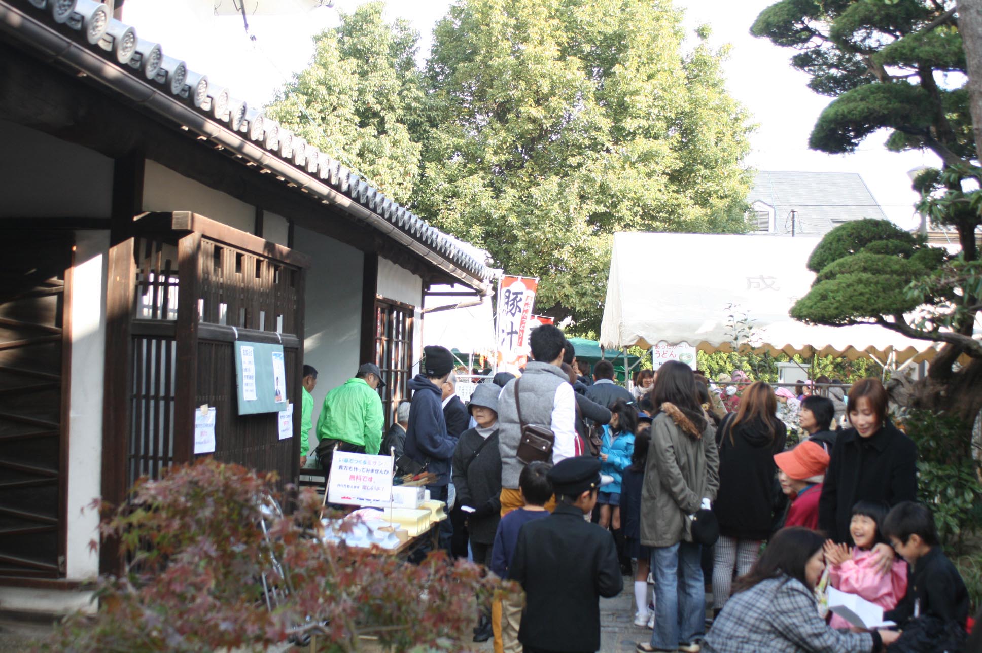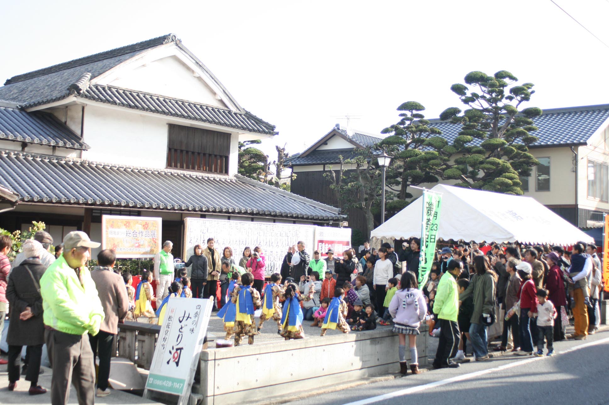 また、庭や広場では抹茶接待や飲食、野菜・日用品の販売をはじめ、地元有志による大正琴の演奏などが次々と行われ、大変な賑わいぶりです。さらに、茶屋町ならではの作品展として、近くの小学生による書道や絵画も展示され、まつりの雰囲気をさらに盛り上げています。