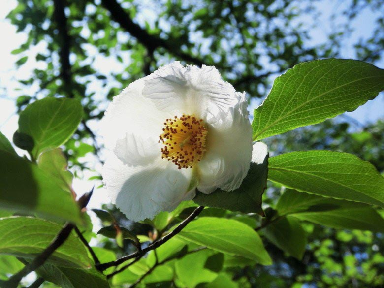 これは平家物語の冒頭一節ですが、これに登場する沙羅双樹は沙羅樹(さらのき)とも呼ばれ、ツバキ科ナツツバキ属の落葉高木です。その花は直径5㎝程で白く、朝に咲き、夜には落ちてしまうことから“儚(はかな)さ”の象徴とされ、平家一門の栄華と没落にたとえられています。