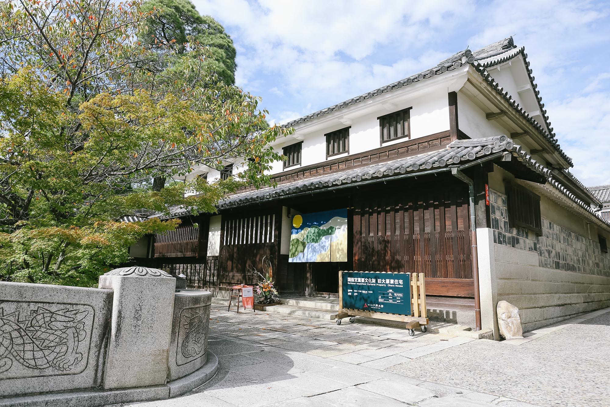 「旧大原家住宅」は倉敷紡績(株)、(株)クラレの創業家であり、また大原美術館を創設するなど、倉敷発展の礎を築いた大原家の代々が暮らした家です。建物は江戸時代後期からの建築で、国の重要文化財に指定されています。外観からも倉敷窓、倉敷格子といった当時の町家建築の特徴的な意匠を見ることができますが、邸内に入ると、石畳に連なる倉群、静寂の日本庭園など、驚きの風景が広がります。