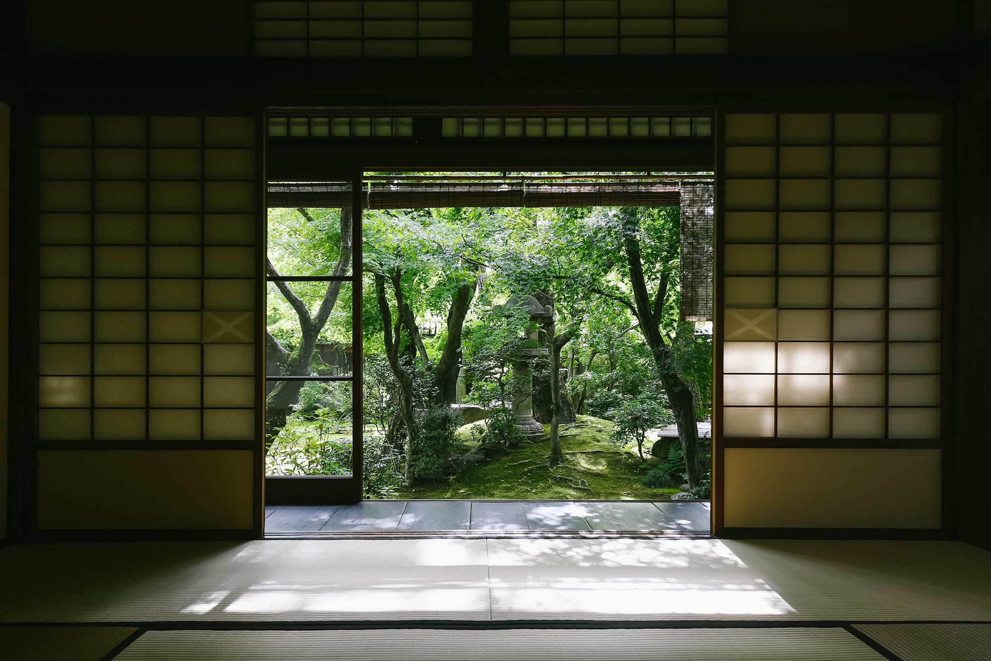 大原孫三郎が作庭に関わった庭園を見渡せる「思索の間」。大原家の時代には、暮らしの中で普段使いされていた部屋です。季節ごとに趣がことなる庭を眺めながら、抹茶を楽しむこともできます。