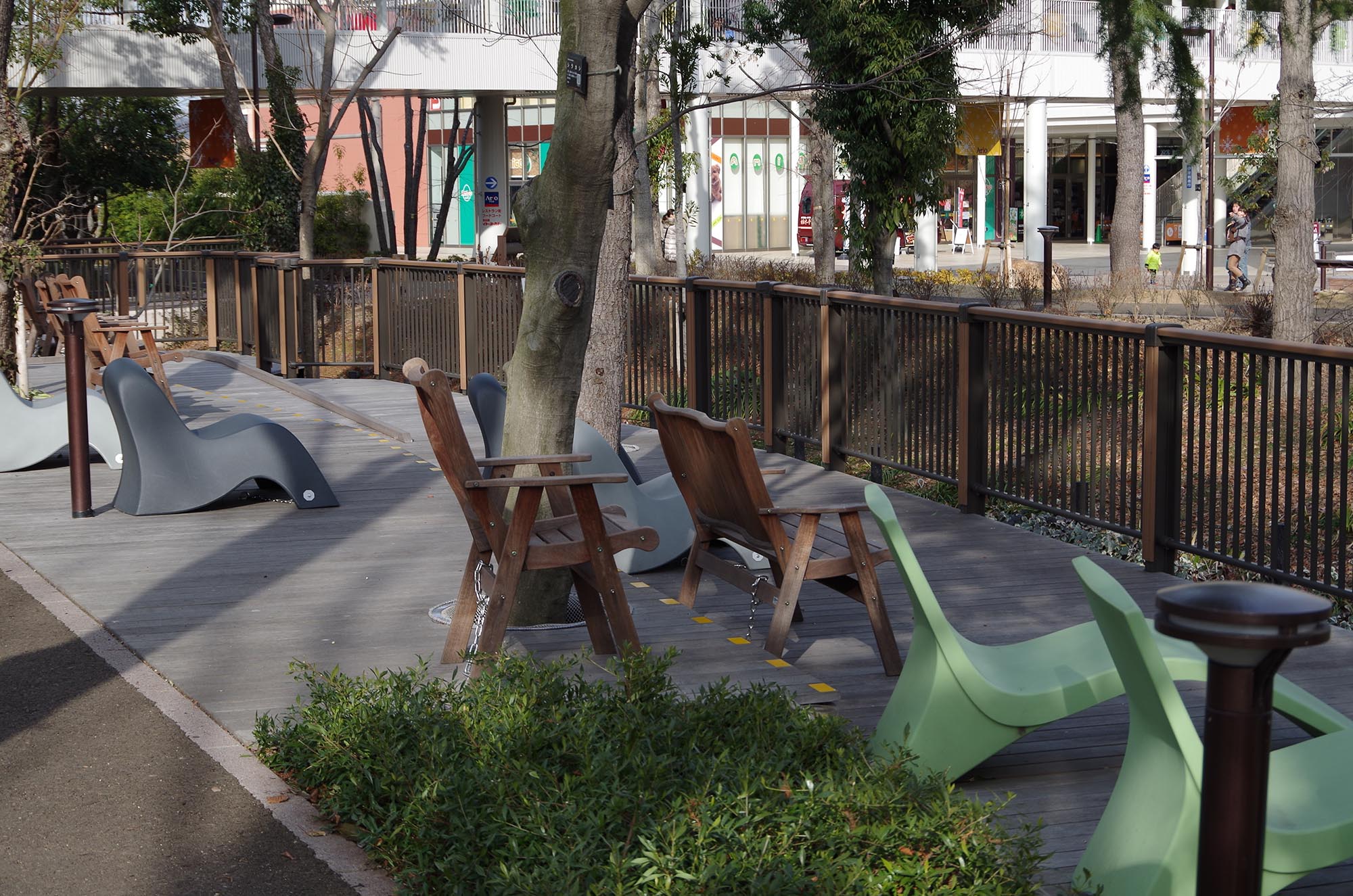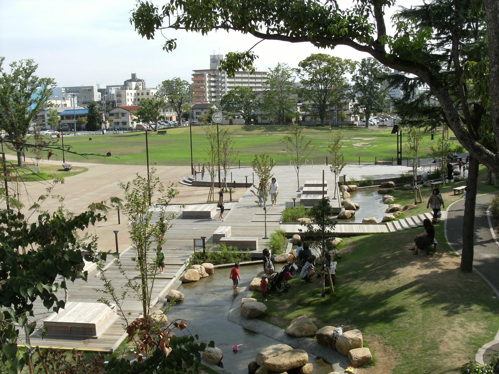 緑地:芝生広場、木製デッキ、水遊び場等々約1.4ヘクタール