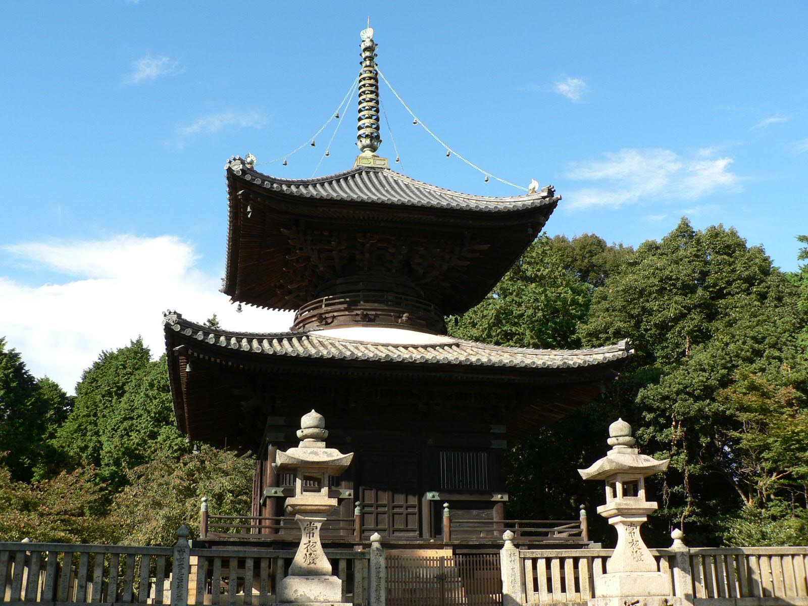 昭和31年(1956年)に「岡山県指定重要文化財」に指定された多宝塔は、下層塔身が方形、上層塔身が円形からなる二重の塔で、下層内部の四天柱には、金箔が施されています。その建物の美しさとスケールの大きさは、訪れるものを魅了してやみません。また、建物南側からの眺めも、瀬戸内の海を見渡すことができ、大変すばらしい景色となっています。