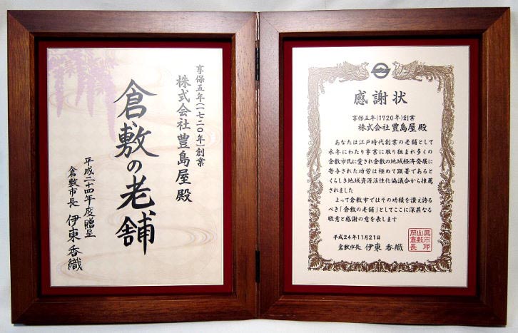 この歴史ある玉島に享保5年(1720年)創業の老舗「豊島屋」があります。創業時は綿・海産物・肥料等の仲買問屋を営んでいましたが、問屋業の傍らで「ヤマテ醤油」として醤油の製造も行っていました。明治23年(1890年)に醤油製造販売専業となり、大正3年(1914年)にはお酢の製造も開始します。