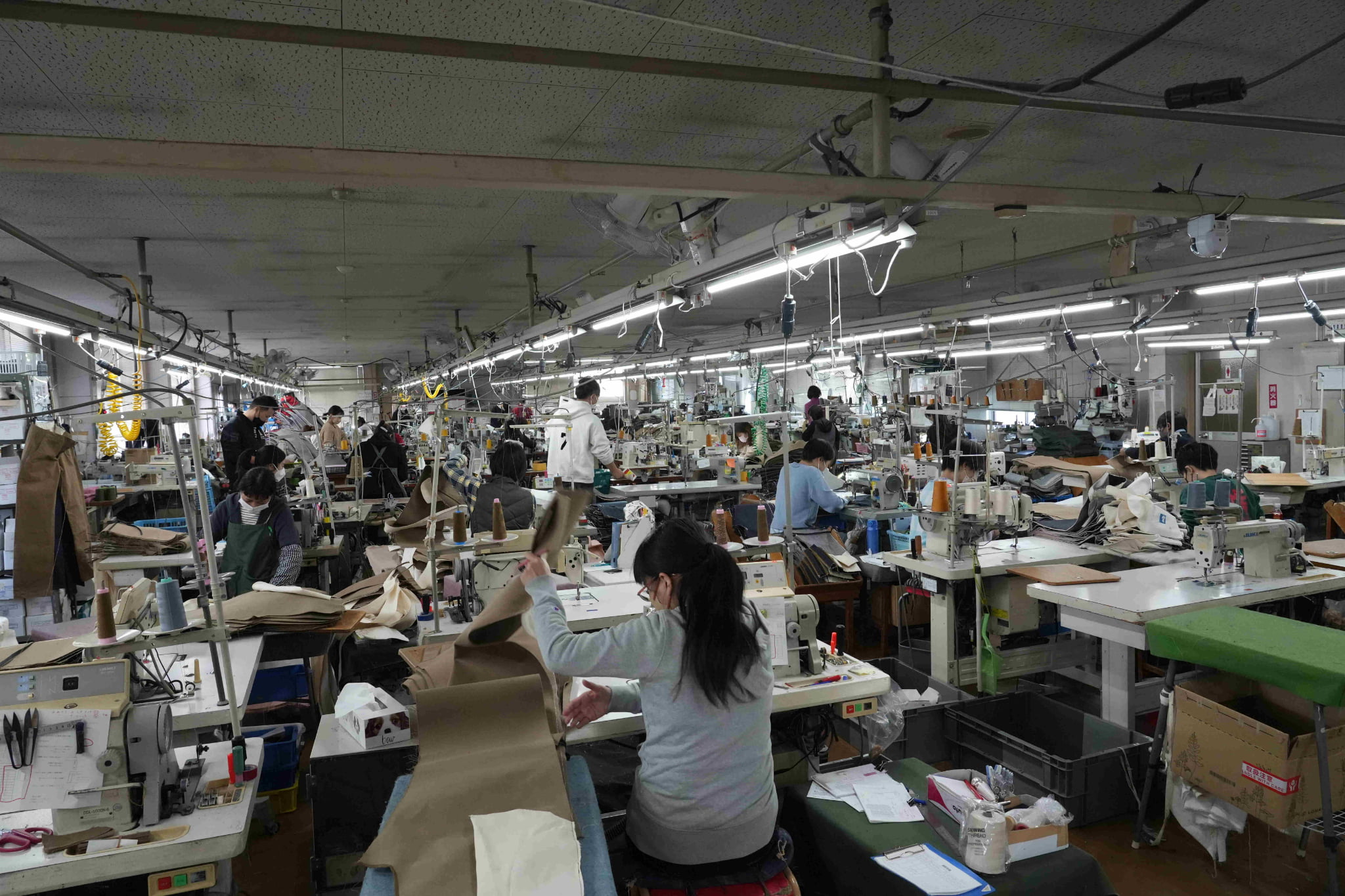 児島本社工場では、昭和の終わりごろまでは生産工場として稼働していましたが地元の縫製工従事者の減少に伴い、人が集まりやすい倉敷と岡山の間に位置し交通の便も良い箕島工場に生産拠点を移行して行きました。現在50人近くの縫製工従事者が在籍し、従業員の平均年齢39.4歳で20~30代の若者も多く在籍しています、また県外からも縫製技術を学びたいと多くの方が入社を希望されるそうです。