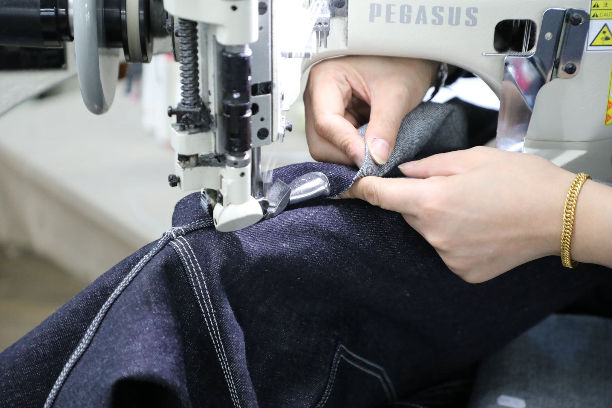 岡山県下最大規模である縫製工場の設備力と、長年蓄積した加工技術により高品質の縫製を可能として、ジーンズ・カジュアルパンツの製造をおこなっています。