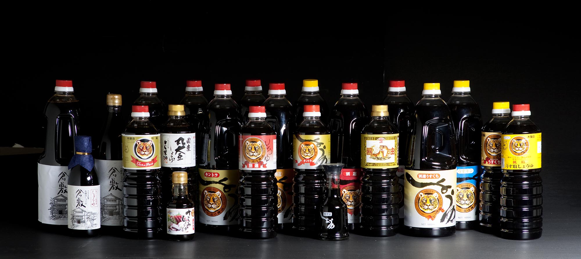 現在の主な製品は醤油のほか、ソース、たれなどの醤油加工品も含め約80種類に及びます。最近は食の欧米化が進み、加工品の比率も上がっています。市場としては岡山県内が9割。実は醤油という商品は地域性がとても強く、その地域地域で独自の味がしっかりと根付いているそうです。具体的には、岡山県の醤油は甘みがあり、幼い頃からその味に慣れ親しんでいると、他の味はなかなか受け入れられないとか。したがってとら醤油でも、昔からの味を守り受け継いでいくことで地域に愛される商品づくりを心がけています。