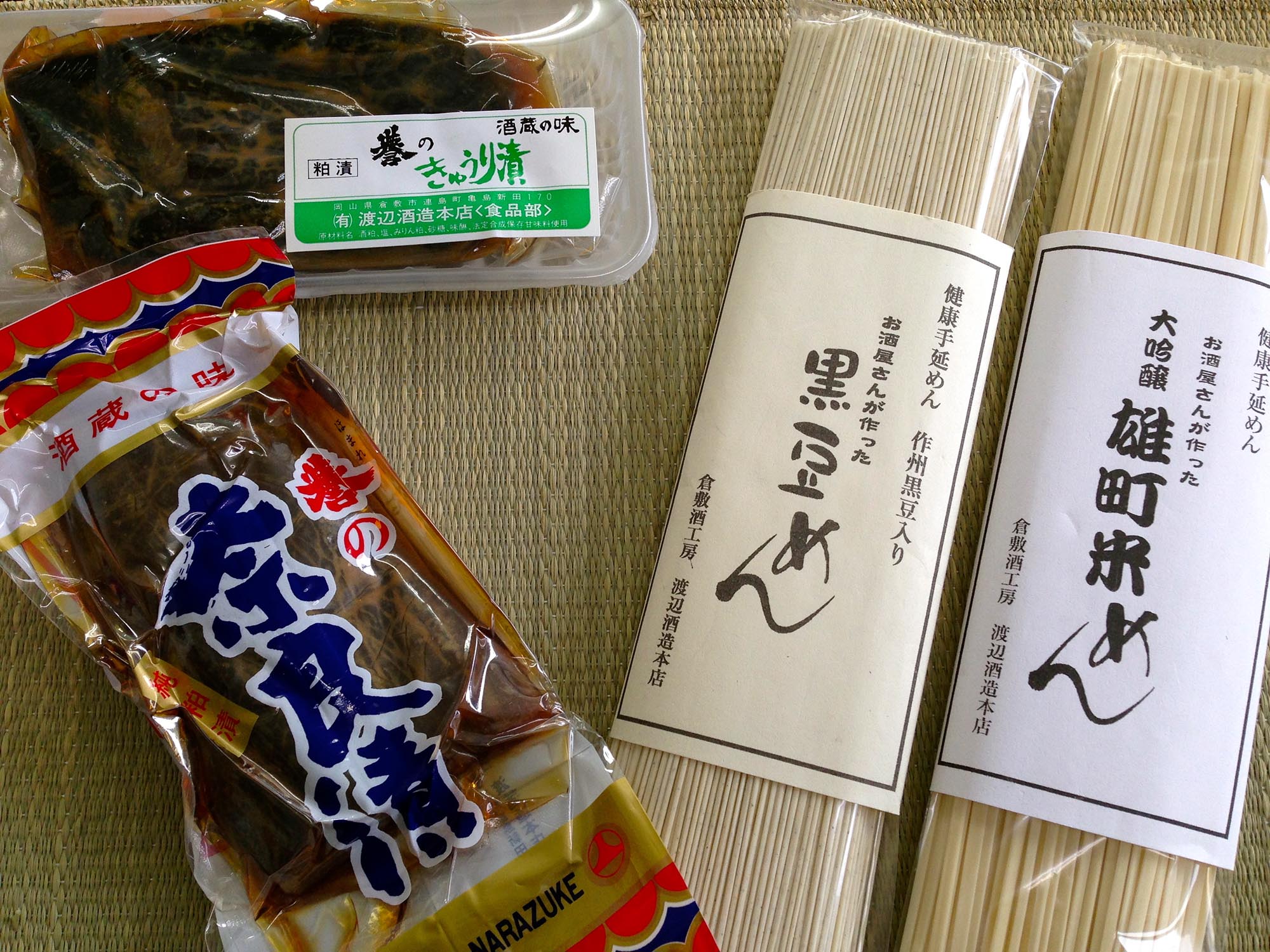 ※なお、渡辺酒造本店では清酒のほか、「大吟醸山田錦めん」、「黒豆めん」などの手延べめんや、奈良漬「特製誉漬」も製造しています。贈答用に人気の商品となっています。