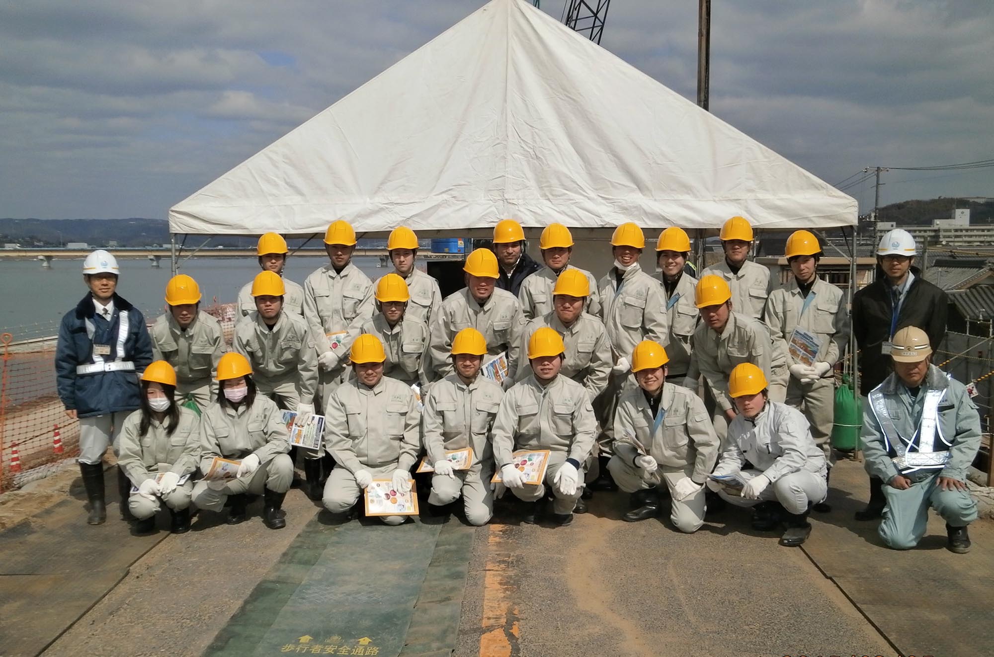 株式会社藤原組は、国土交通省中国地方整備局の工事成績ランキングで、常に上位にランクされています。国土強靭化の対策事業にあたっては、国土交通省とともに小学校に赴き、授業として土木工事事業の実例を紹介しながら、その工事を行なうことで、どのような災害を防ぐことが出来るかを説明するなど、広報活動の一助も担っています。