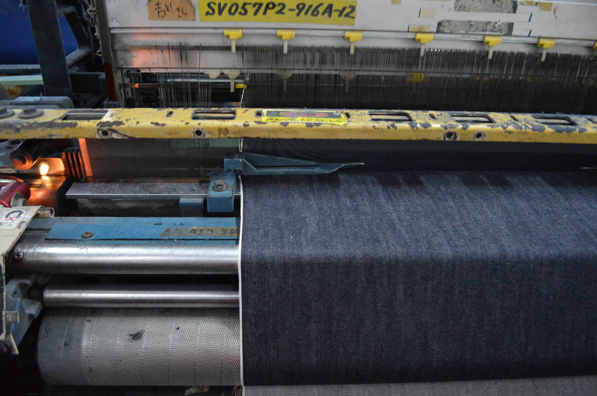 日本で国産ジーンズの開発が始まったのが1960年代半ばのこと。この時はアメリカから輸入した生地を使って、児島で初の国産ジーンズが誕生しました。昭和46年(1971年)に社長に就任した3代目・中村公大は、織物工場で修業し、厚みのある生地の織り方や、織りあげた後の生地の縮みなどについて学び、デニム生地の製造に着手。これは児島のみならず、岡山県内でもかなり早いスタートでした。その7年後には事業をデニムの製造に特化しました。約30年前までは、1日24時間のフル稼働を週に6日間続けていたそうです。