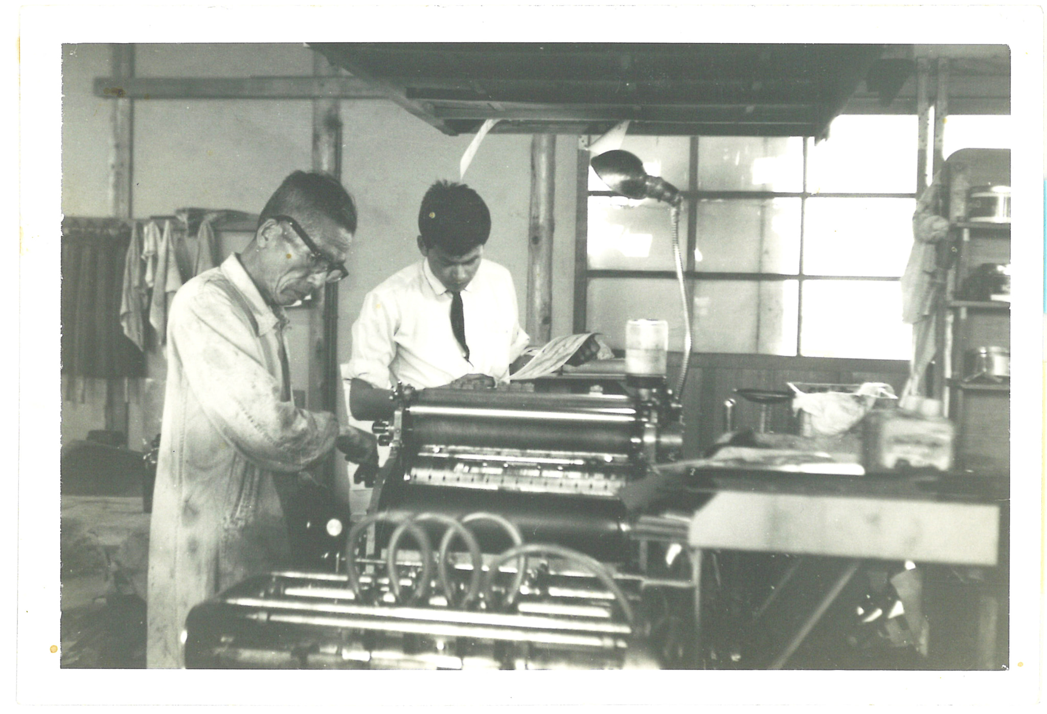 ササベ印刷株式会社は大正13年(1924年)、現在の地である倉敷市西阿知において、創業者の雀部一馬が、弟の賦一らとともに『ササベ兄弟印刷所』として活版印刷所を始めたのが原点です。活版印刷は、鉛合金で鋳造した膨大な数の活字を拾い植字する、手間と時間が必要な作業でした。当初は、歴史書等の冊子や事務帳票類を印刷していましたが、時代に対応して平版印刷(石版)も取り入れ、醤油や酒瓶に貼る金銀をあしらったラベル類など、多色刷りを手掛けるようになりました。