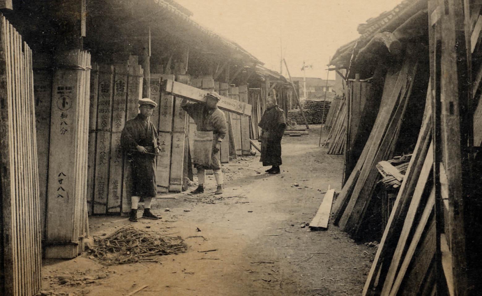 倉敷木材株式会社は、大久保材木店として明治40年(1907年)に倉敷駅の北側で創業されました。高梁川を使って運ばれた流域の木材を製材していたそうです。その後、昭和22年(1947年)に倉敷木材株式会社として法人化。戦後の復興期に合わせて次々開発される新建材の取り扱いを開始し、同時に収納家具やキッチン、トイレ、浴槽といった住宅設備機器も商品に含まれるようになっていきました。そうした中で昭和43年(1968年)には本社を現在の中島に移転しています。
