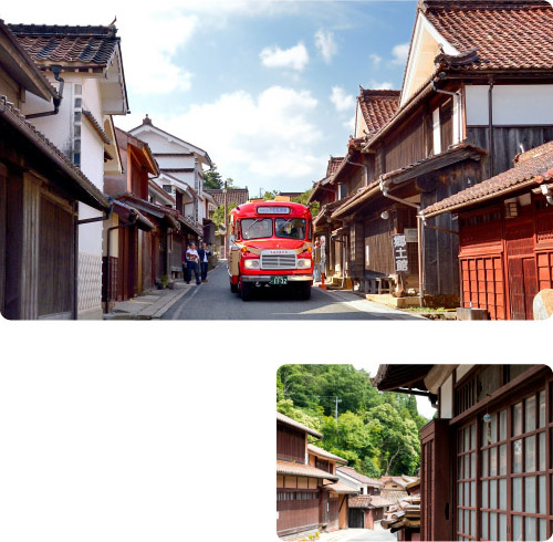 標高500mの山間に、赤褐色の石州瓦とベンガラ漆喰壁で統一された、国内でもまれな家並みが続く、国の重要伝統的建造物群保存地区。かつて銅とベンガラで財を成した豪商たちが形成した美しい集落は見どころも多彩です。