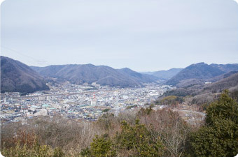 標高200m、観光望遠鏡も備えるビュースポット。備中松山城や高梁市街地、高梁川が一望できます。