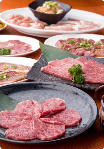 新見市千屋地区で飼育するブランド牛、千屋牛を一頭買いする焼肉・ステーキの店。上品な脂の甘さが特徴で、初めての人にはカルビ、ロース、モモを食べ比べできるメニューがおすすめです。希少部位がそろうのも魅力。