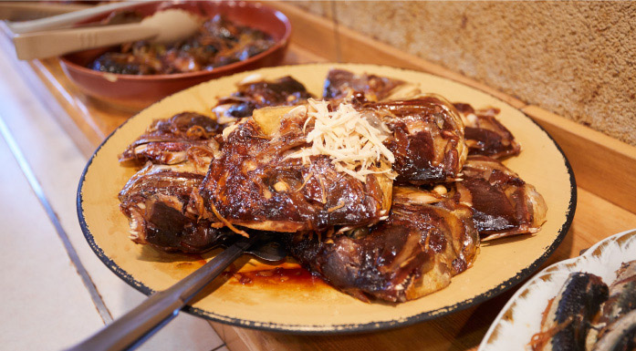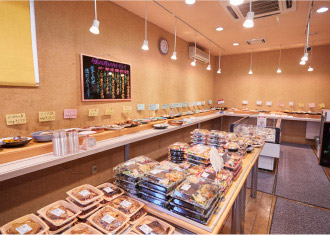 老舗鮮魚店が直営するテイクアウト専門店。店内には弁当やパック詰めの惣菜、煮付け、塩焼き、刺身、寿司、サラダなどが所狭しと並びます。いずれもみずみずしく、リーズナブル。2階にイートインスペースがあります。