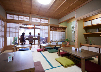 ⾃治会が所有する築130年の庄屋屋敷を引き継ぎ、農家民宿&カフェとして再生。自給の無農薬米をはじめ地元産のはと麦味噌、高田採卵の卵、野菜などを使う、滋味深いランチが人気を集めています。農業体験も受け付け中。