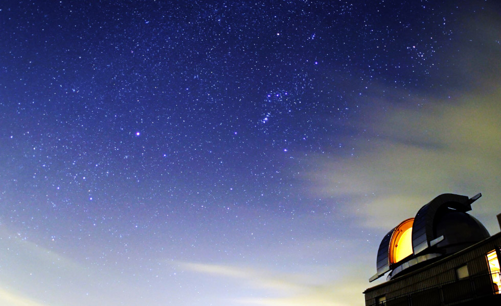 旧環境省が「星空の街」に認定した美星町にある、国内有数の公開天文台。光害防止条例を制定し、地域一丸となって星空を守っています。屋外照明は、午後10時以降の消灯を奨励。夜間は星空と町が同化するほど真っ暗闇に包まれます。最高の星空を最高の条件で見られるように造られた美星天文台(標高420m)では、驚くほどたくさんの星が瞬く全天を直接、眺められます。ドームに設置する口径101cm反射望遠鏡は人間の瞳の2万倍の光を集め、肉眼では観測できない星雲や彼方の天体を大迫力で望めます。天文台と星空と、隣接する美星スペースガードセンターのまるで異空間のような景色も格別です。