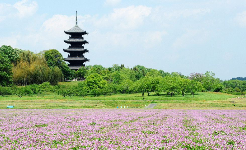 備中国分寺前の田畑では、レンゲや菜の花など季節ごとに見られる風景が変わるので、見頃の時期をチェックしてみましょう。