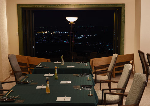 2018年7月、遙照山に開業したリゾートホテルのダイニング「ベッラ・イゾーレ」。浅口市街地や高速道路、山陽本線が見渡せる南面に全開放の窓を設け、景色を眺めながら優雅なランチ&ディナーが楽しめます。シェフが腕を振るうフレンチイタリアンは、地元食材を主に使い、少しあっさりだけどコクがある味付けが特徴。不定期で観望会を開催するなど、ロケーションを生かしたもてなしが魅力です。