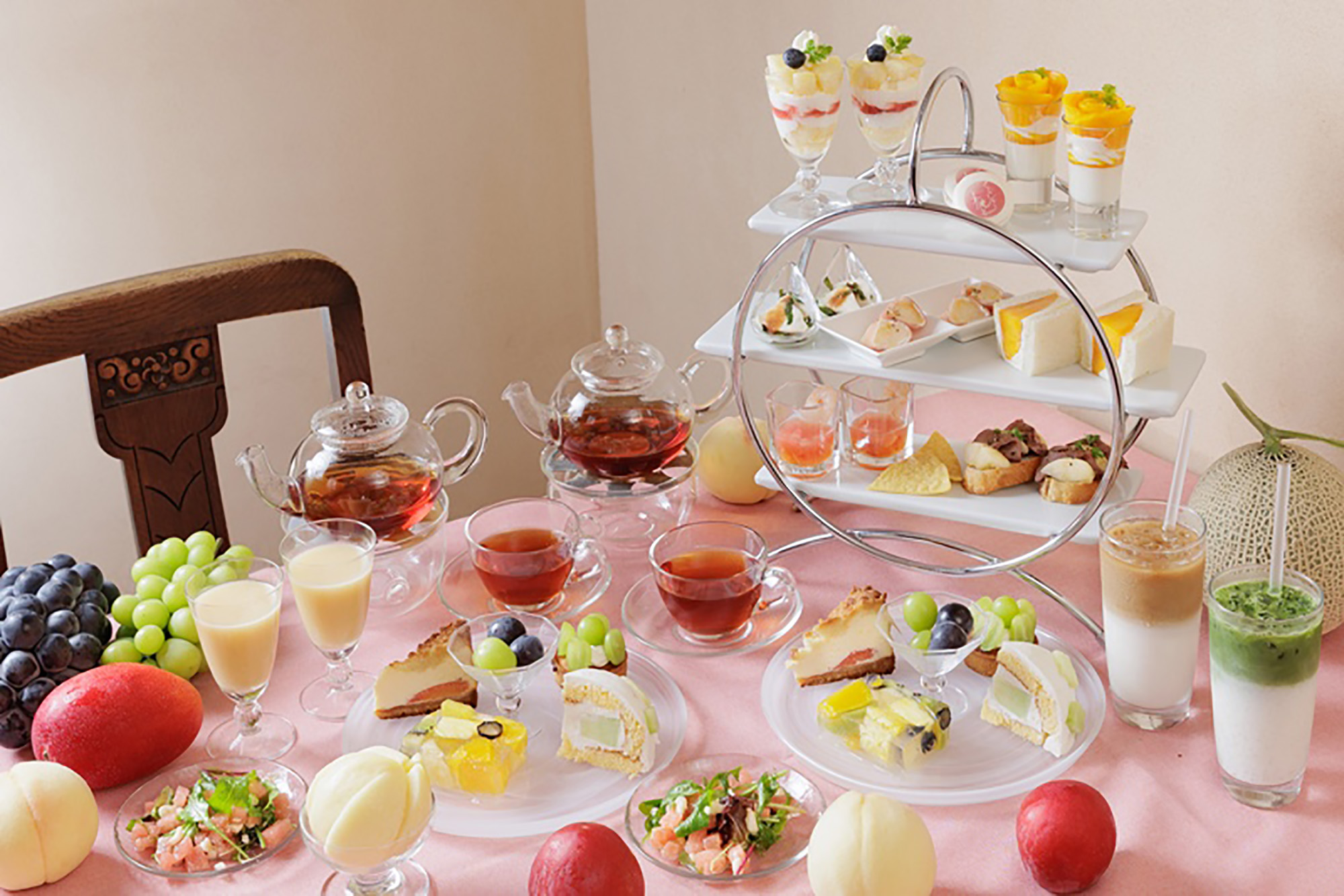 夏は、岡山県産の桃またはブドウが盛られたアフタヌーンティーでインスタ映えも楽しめます。 桃のアフタヌーンティーは7月~8月中旬です。 ※店舗によって桃を提供する時期は異なりますが、一般的に桃は8月中旬までです。 ※お店によりブドウのみのところもあります。