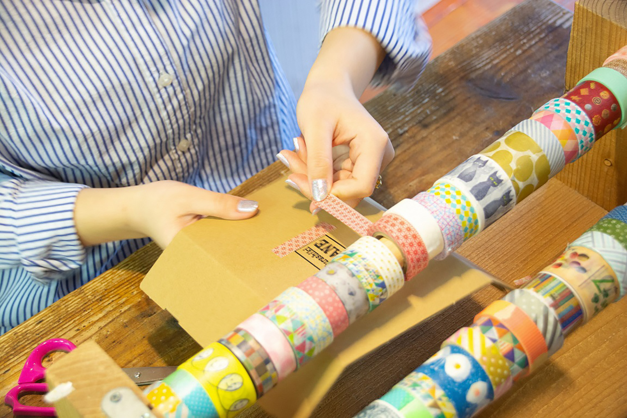 装飾マスキングテープ発祥の地である倉敷では、さまざまなデザインのマスキングテープが販売されています。また、市内店舗などでは、マスキングテープを使ったデコレーション体験や、工場見学ツアーなど、店舗独自のオリジナルイベントなども開催されています。